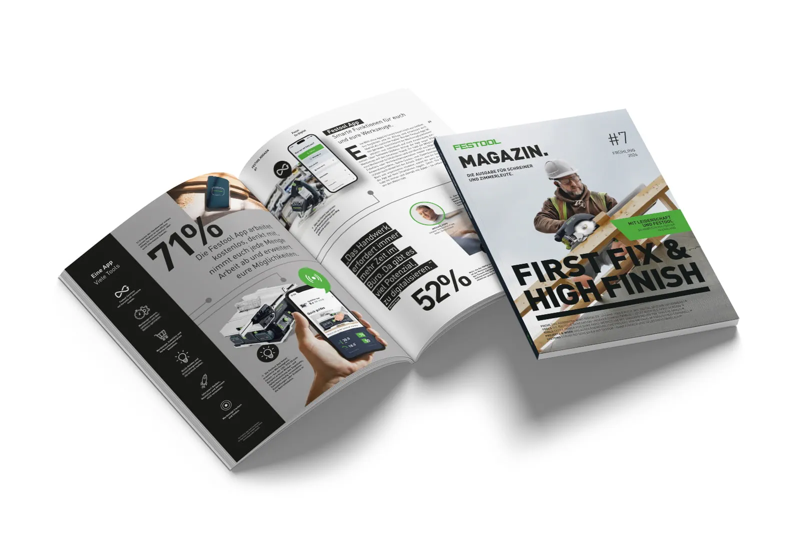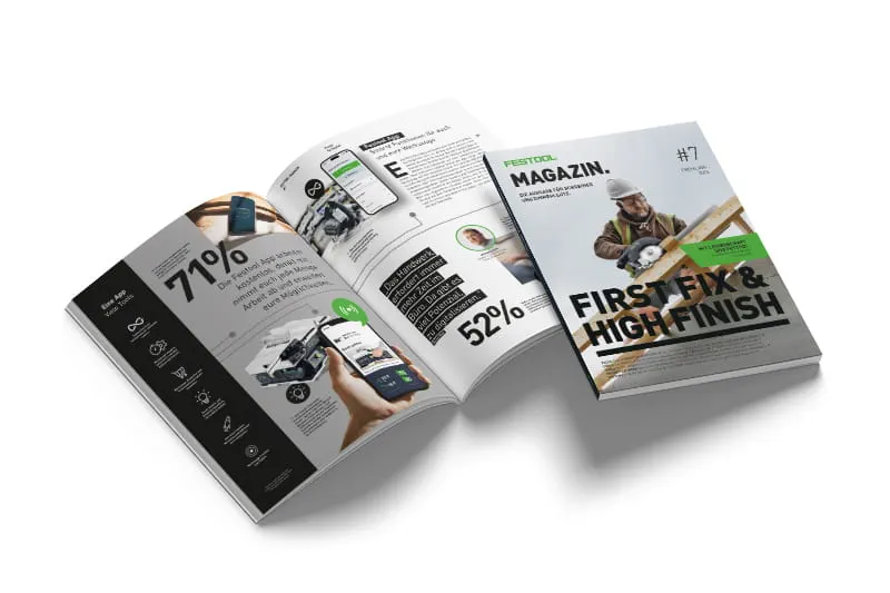 Die neuen Festool Kundenmagazine 2026 für Maler sowie Schreiner und Zimmerleute zeigen, wie modernes Handwerk heute erfolgreich arbeitet: mit leistungsstarken Akku‑Werkzeugen, durchdachten Systemlösungen und smarten digitalen Services. In beiden Ausgaben erwarten euch praxisnahe Inhalte zu den neuen Tabless‑Akkus, zur nächsten Generation der DOMINO Familie, zu effizienten Lösungen für staubfreies Arbeiten sowie inspirierende Handwerksprojekte aus der Praxis. Wertvolles Know‑how für Werkstatt und Baustelle – kompakt im Magazin gebündelt.