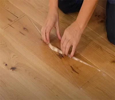 Ist die zu reparierende Holzdiele sauber herausgetrennt und der Boden abgesaugt, liegen die Nuten und Federn unversehrt frei und können für eine perfekte Verbindung wiederverwendet werden.