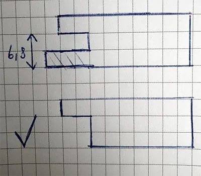 Damit wir den neuen Hozboden von oben einlegen können, wird nur der untere Überstand der Nut weggeschnitten. In unserem Fall auf die Schnitthöhe von 6,8 mm.