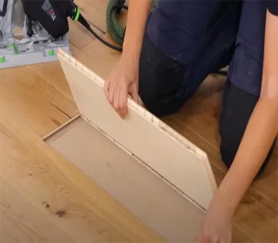 Somit wird die Verbindung mit den umliegenden Dielen nicht unterbrochen und wir erstellen somit eine hervorragende Auflage auf die Feder.
