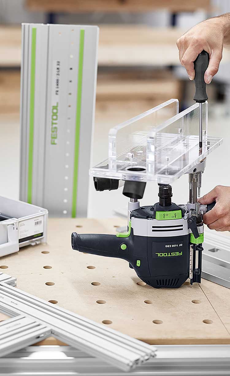 Nahezu unbegrenzte Anwendungsmöglichkeiten für deine Oberfräse? Egal, ob du runde oder eckige Ausschnitte fräsen willst, oder ob Fingerzinken oder Schwalbenschwanzverbindungen deine nächste Kommode verbinden sollen. Mit unserem vielfältigen Zubehör findest auch du die passenden Frässchablonen und Vorrichtungen für deine Anwendung.