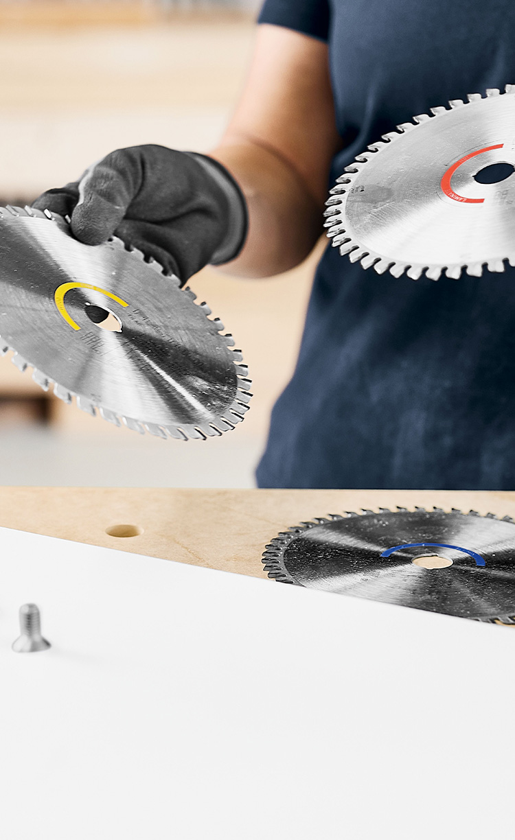 - Wenn ihr für eure Anwendung einen sauberen, präzisen und ausrissfreien Schnitt benötigt, solltet ihr daher ein Kreissägeblatt mit vielen Zähnen wählen, da diese das Material gleichmäßig schneiden.